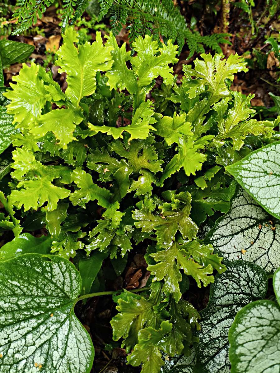 Asplenium scolopendrium 'Cristata', czyli języcznik zwyczajny 'Cristata', to wyjątkowa odmiana języcznika, która zachwyca swoimi gęsto karbowanymi, falistymi brzegami liści. Roślina tworzy zwarte, wyprostowane kępy o intensywnie zielonych, błyszczących liściach, które pozostają atrakcyjne przez cały rok, nadając cienistym miejscom w ogrodzie elegancką i delikatną strukturę.