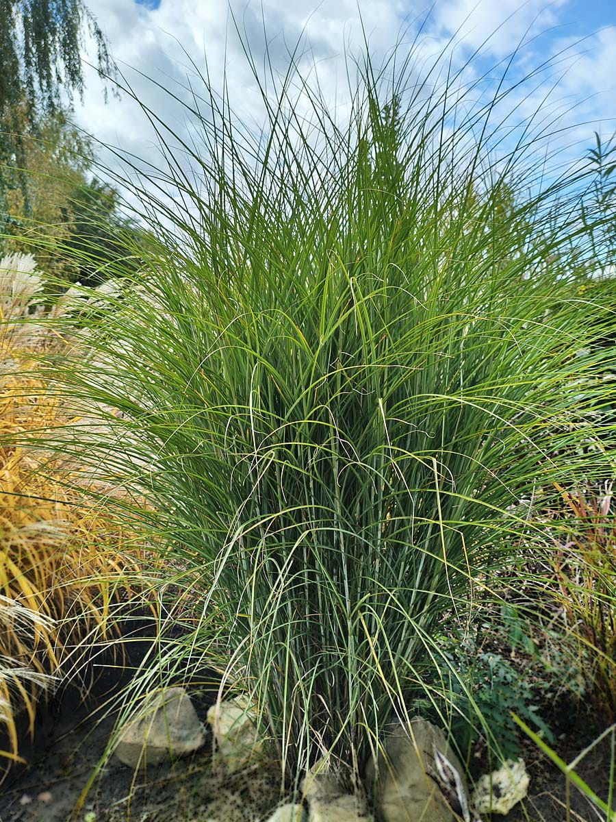 Miskant chiński ‘Gracillimus’ to jedna z najpiękniejszych odmian miskanta – ceniona za swój gęsty, kępiasty pokrój oraz wąskie, przewieszające się liście, które tworzą lekko falującą, zieloną fontannę. Jesienią liście przebarwiają się na złocisto-brązowy kolor, dodając ogrodowi ciepła i naturalnego klimatu.
