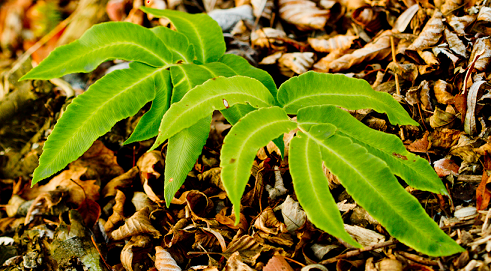 Wyrazista paproć o oryginalnym, niepowtarzalnym kształcie.