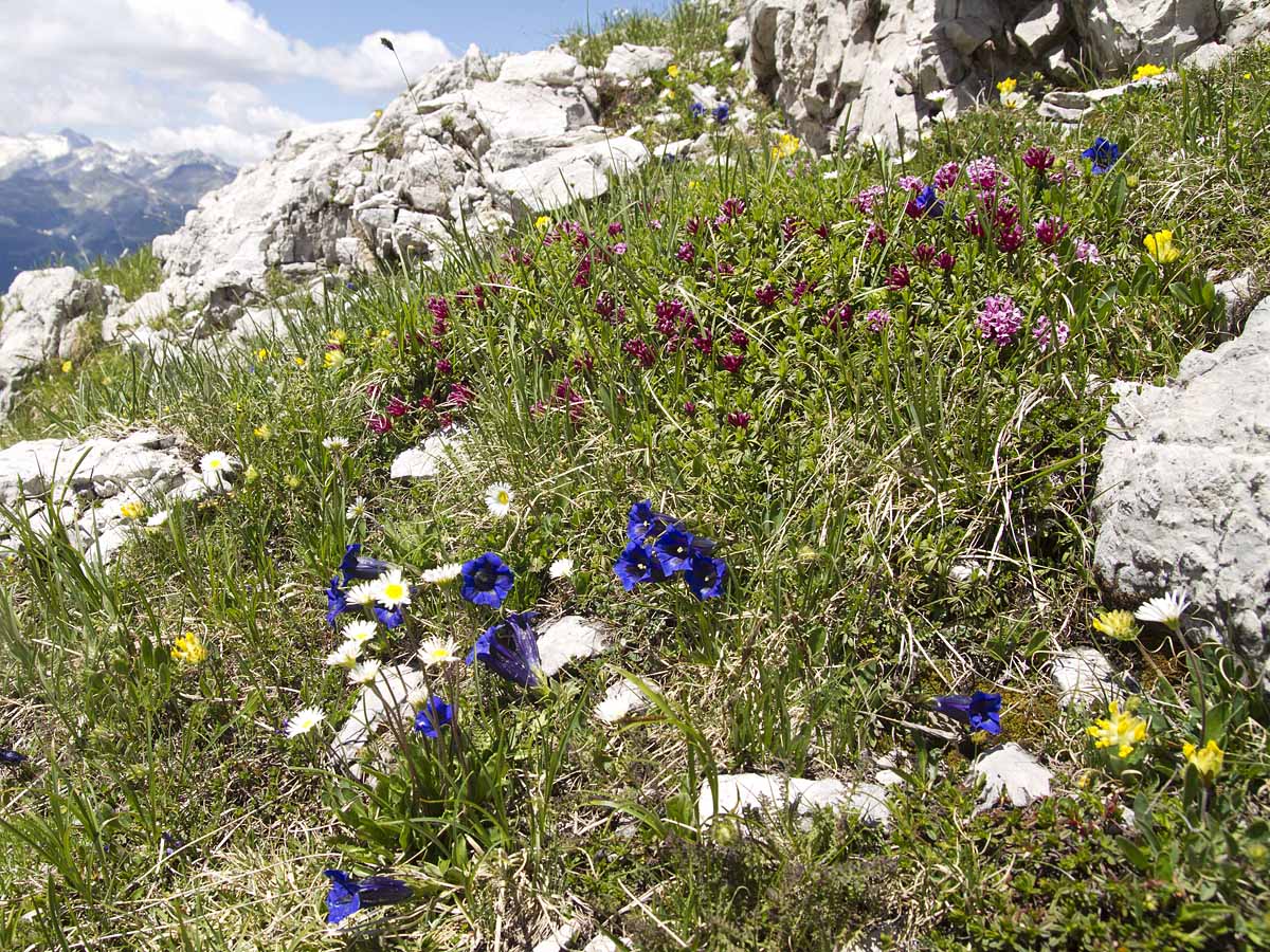 * w kompozycjach z niskimi trawami i roślinami górskimi.