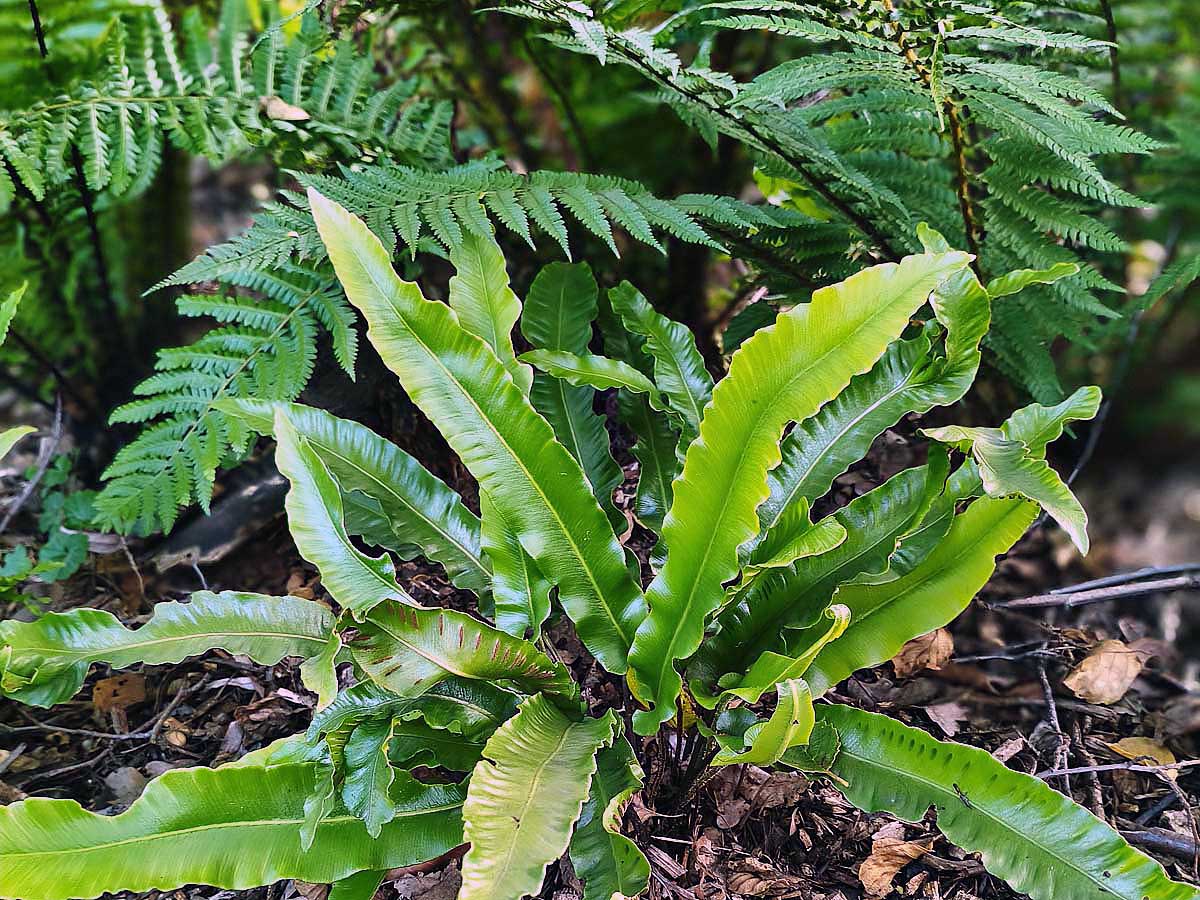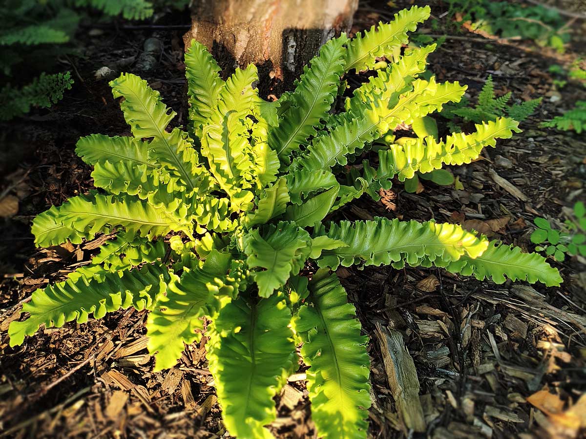 Języczniki zwyczajne (Asplenium scolopendrium) będą doskonałym wyborem. To paprocie, które łączą naturalne piękno z praktyczną funkcją wypełniania cienistych przestrzeni przez cały rok.